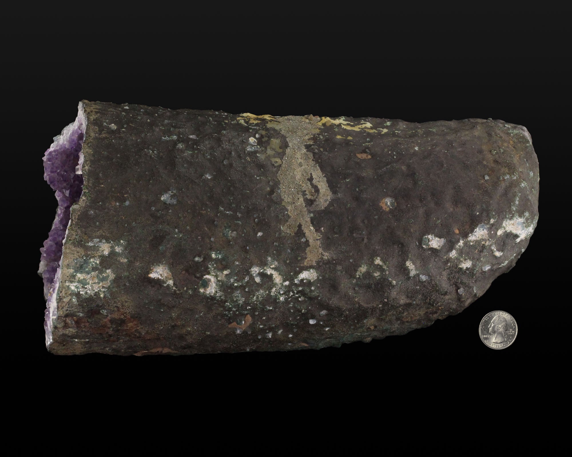 A very unique (if not rare) Geode - it’s actually a very large “tube” that is over a foot in length (31cm). The entire interior of the tube is covered with lustrous, deep-purple Amethyst crystals. This is a really eye-catching and impressive piece!