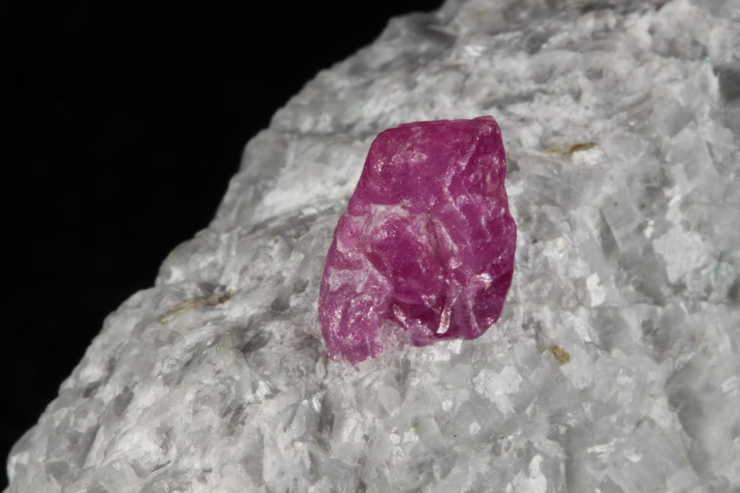 A perfectly centered crystal of pink-red Ruby in contrasting white Marble matrix. The Ruby crystal is lustrous, highly translucent and nicely terminated. A very aesthetic specimen with a beautifully colored Ruby crystal perfectly balanced - a great piece in excellent condition.