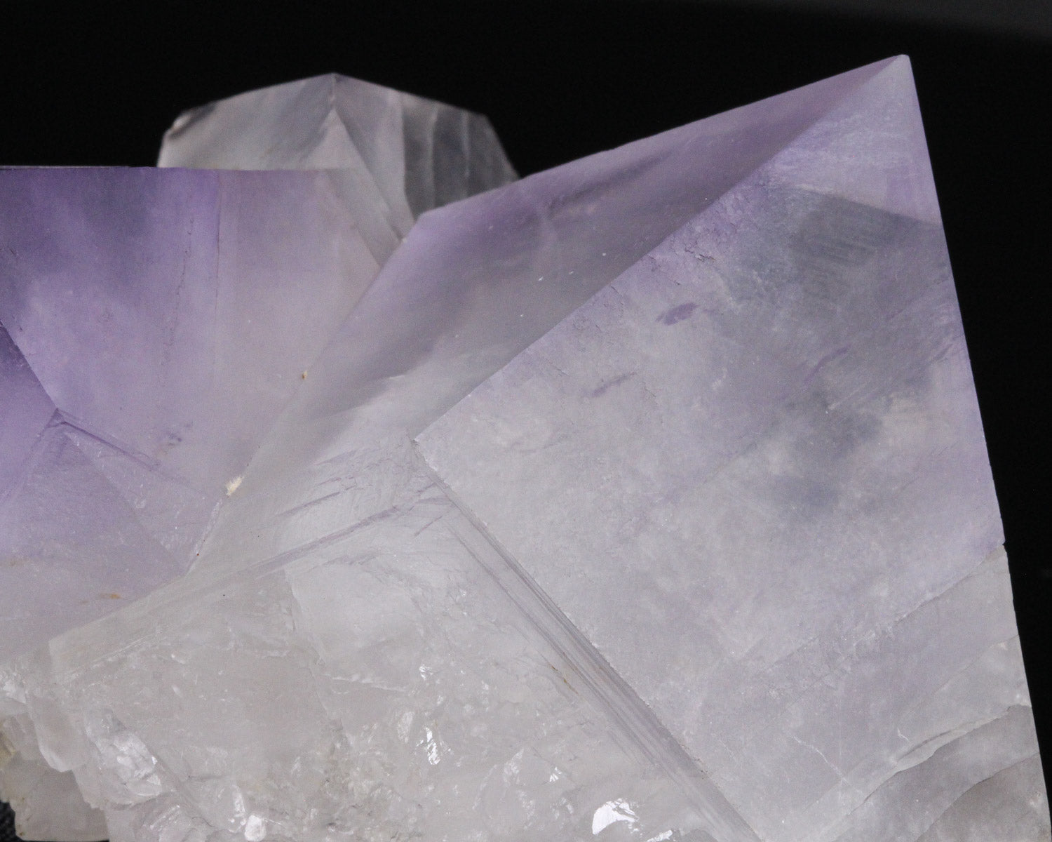 A large cluster of transparent, lustrous purple-zoned Fluorite octahedral crystals. An exceptional piece with great color and luster, clean terminations, beautiful zoning and sharp crystals. No damage.