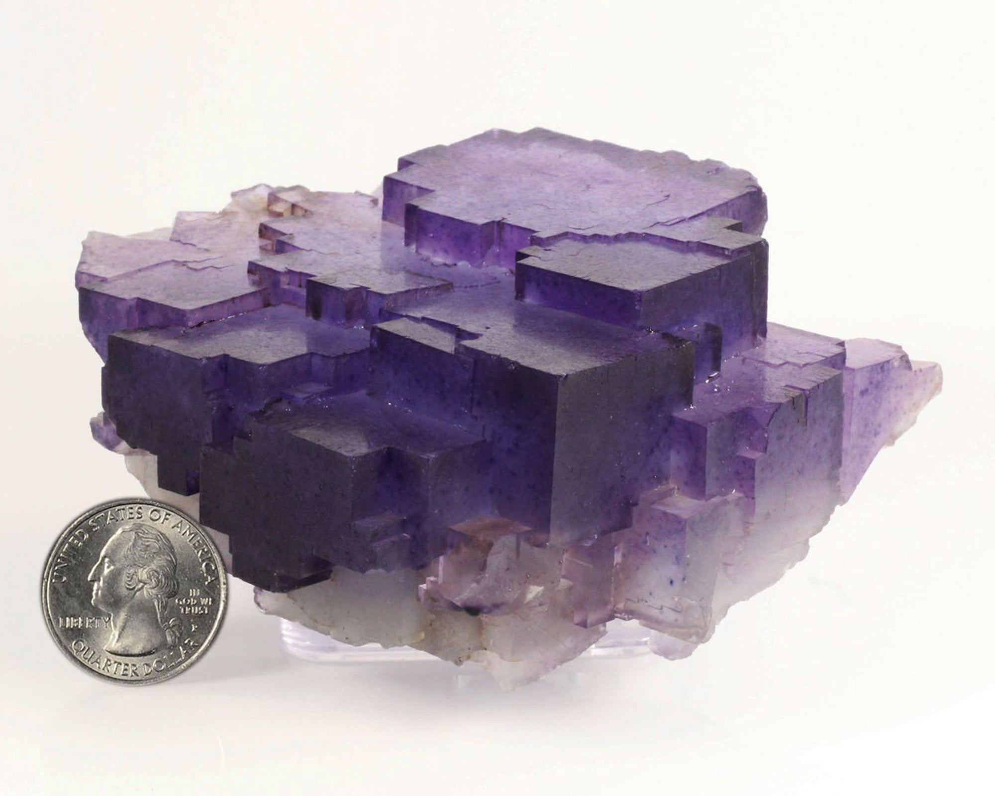 A beautiful, deep purple stepped Fluorite specimen from the Denton Mine in Illinois. This large piece has lighter purple, almost clear in one area, zoning near the very bottom, transforming to deep purple zoning throughout the rest of the piece. Exceptional piece and in excellent condition.
