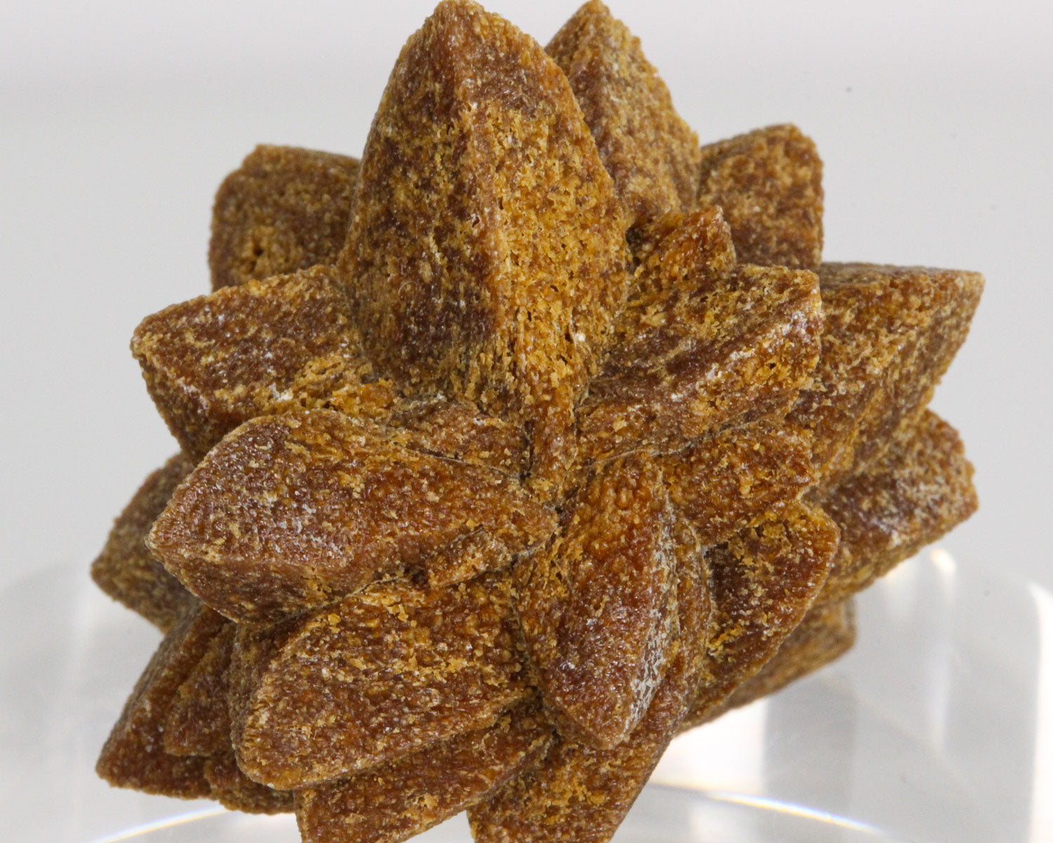 This is a very unique specimen: A spherical cluster of brown Calcite crystals pseudomorphed after Ikaite. The Calcite chemically replaced the mineral Ikaite while retaining the crystal shape of the original Ikaite. Although not an official name, this particular specimen/pseudomorph is referred to as Glendonite because of its initial discovery in Glendon - subsequently the name stuck. (I much prefer to say “Glendonite” than “Calcite pseudomorph after Ikaite” - nobody’s got time for that). A great, unique specimen in excellent condition.