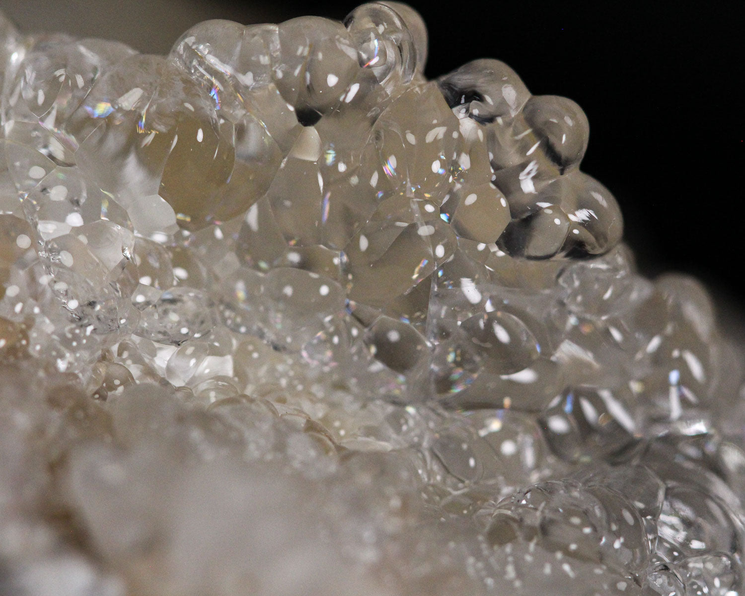 This Hyalite Opal is exceptionally large with the vug entirely coated with a massive and thick layer of transparent, colorless botryoidal Hyalite Opal. The Hyalite exhibits intense green fluorescence when exposed to ultraviolet light. Additionally, the adjoining brown matrix has been polished to highlight and accent the Hyalite. A stunning piece and a great addition to any collection, especially for UV fans! In excellent condition.