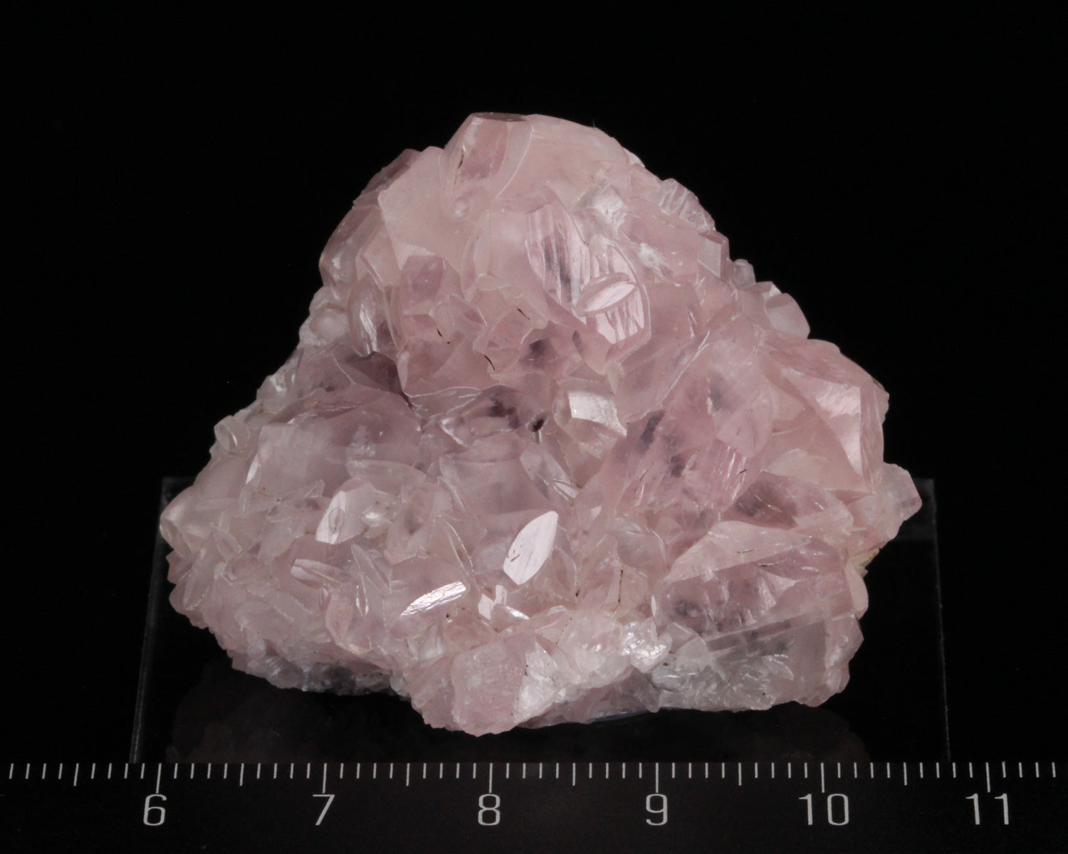 From the famous Tsumeb mine, this colorful piece features lustrous, transparent, pink intergrown modified rhombohedral Cobaltoan Smithsonite crystals on black sulfide matrix. The crystals clearly present striations throughout. This is a striking and aesthetic piece. In excellent condition.